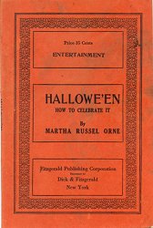 | Hallowe'en: How to Celebrate It, by Martha Russel Orne, published by Fitzgerald Publishing Corporation in 1898 48 pp. Yes, that's 1898! This little antique includes a long list of Halloween fortune-telling methods, games, and recitations. A great look at what this holiday was like 100 years ago, in the days before trick-or-treating, and probably the first book dedicated solely to Halloween. |